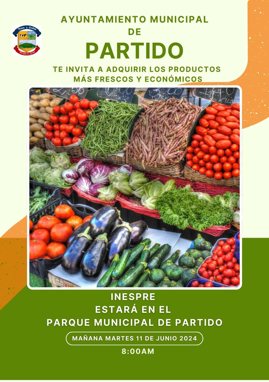 Partidenses, el camión de INESPRRE con los productos más frescos y económicos estará mañana martes 11 de junio, a partir de las 8:00am, en el Parque Municipal José Remigio Rodríguez de este Municipio Partido.