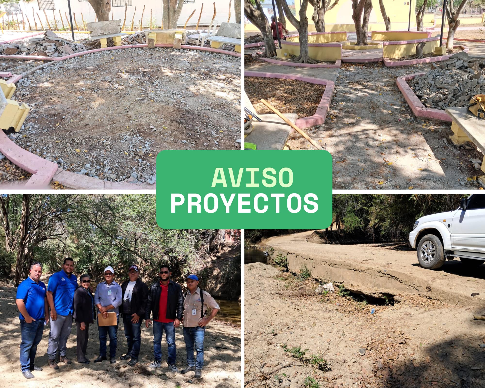 Por este medio se les informa que el Ayuntamiento Municipal junto a su alcalde Ramón Amable Peña, han iniciado los trabajos de remozamiento del parque de Aminilla; además se inspeccionó el paso de Aminilla al Rodeo con la intención de reconstruir el badén que une ambas comunidades.
